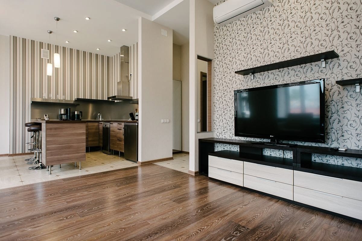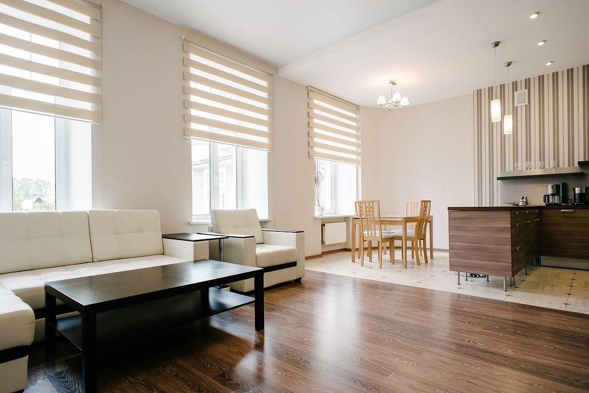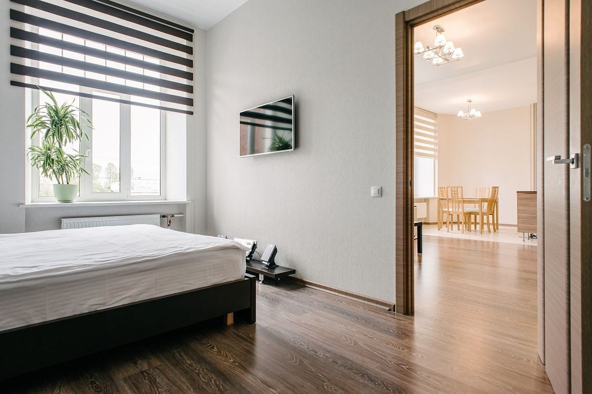 Modern 1-bedroom apartment is located in the same building with our guest rooms. The apartment has 2 rooms: spacious living room combined with a kitchen and dining room and a separate bedroom with a double bed. This apartment is often booked by couples, families, as well as guests who prefer superior accommodation. There is a 24-hour security service at the entrance.